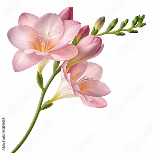 Freesia 3D rendered flower delicately isolated on a white background with vibrant colors and intricate details
