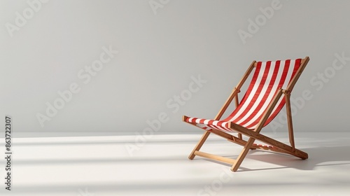 Freestanding Beach wooden chair on empty light background. Summer holiday atmosphere.