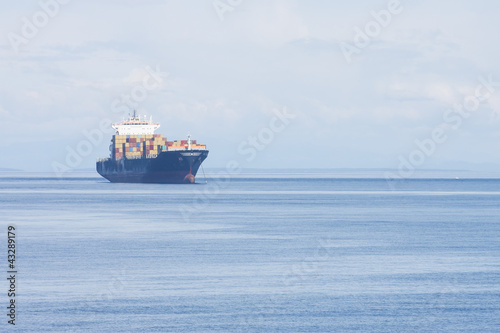 Freighter on Blue Water at Dawn