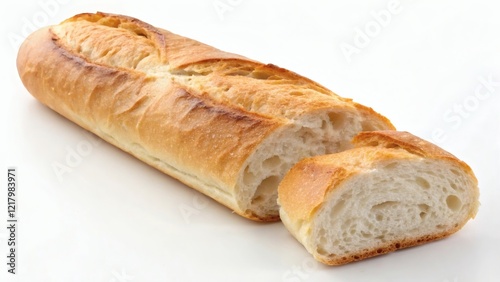 French baguette cut in half on a white background