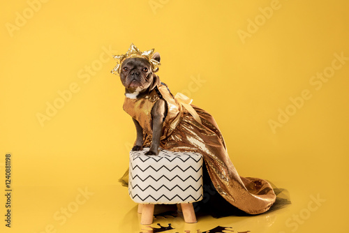 French Bulldog in Gold Dress