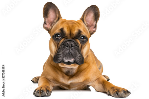french bulldog, puppy, white background, adorable, cute, playful, lying down, dog, pet, animal, minimalist, portrait, fur, small, ear, expression, face, paw, closeup, isolated, detailed, sharpened, young, sweet, lovable, charming, indoor, simplicity, photo, breed, companion, studio, clean, modern, vibrant