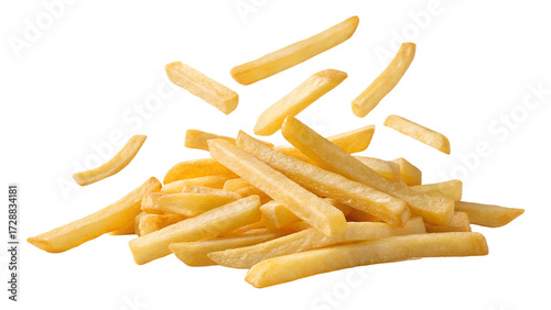 French fries isolated or flying french potato fries. PNG transparency