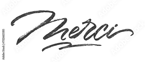 French word Merci (thank you) written in brush script font with marker ink effect isolated on transparent background