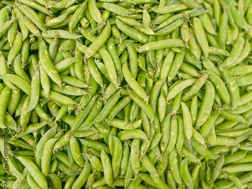 Fresh green peas heap at market place