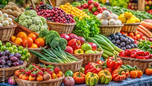 Fresh and colorful fruits and vegetables at a farmer's market, organic, produce, healthy, nutrition, variety, vibrant, natural