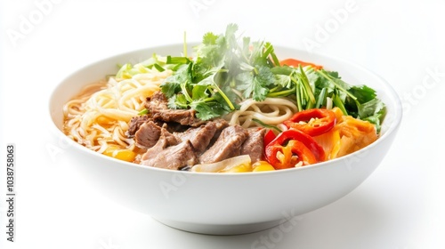 noodle, soup, vegetable, meat, bowl, steam, garnish, herb, cilantro, red pepper, carrot, healthy, comfort, asian, cookery, fresh, delicious, culinary, meal, traditional, dining, broth, ingredient, colourful, food, tasty, wholesome, savoury, lunch, dinner, receipe, hot, aromatic, warm, eatery, presentation, plate, eat, dish, favor, steaming, nourishment, serving, enjoyment
