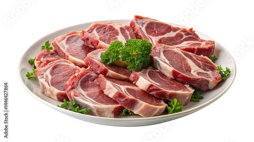raw meat, uncooked, fresh, meat, white plate, plate, parsley, garnish, food, cookery, meal, dinner, lunch, protein, delicious, epicure, fine dining, eatery, butcher, shop, market, grocery, ingredient, cooking, culinary, photo, closeup, healthy, alimentary