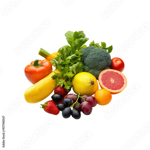 Fresh and Vibrant Fruits and Vegetables on White Background