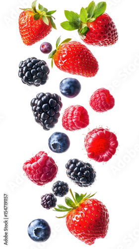 Fresh Berries Falling isolated on transparent white background, clipping path