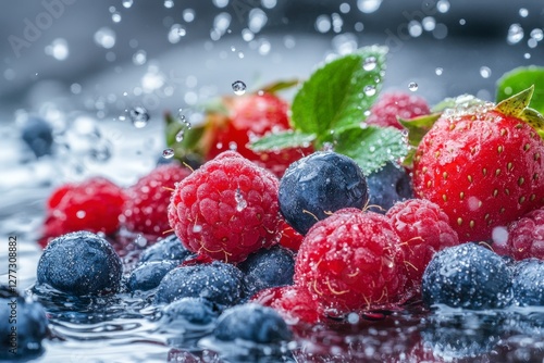 berry, raspberry, strawberry, blueberry, water, splash, fresh, nature, fruit, healthy, vibrant, red, blue, green, summer, delicious, organic, clean, closeup, wet, juicy, vitamin, garden, seasonal, sweet, natural, background, water droplets, farm, antioxidant, food, health, tropical, aesthetic, epicure, nourishment, diet, bright, refreshing, variety, colourful, detail, texture, visual, clarity, culinary, composition