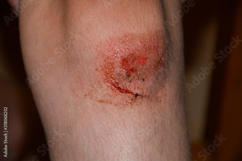 Fresh bleeding abrasion on the knee