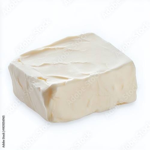 Fresh block of cream cheese with a smooth texture, perfect for baking and spreading on bagels or toast.