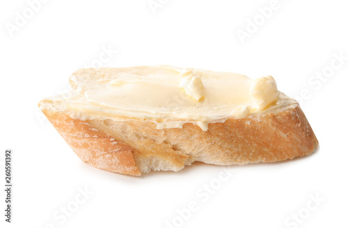 Fresh bread with butter on white background