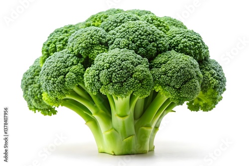 Fresh Broccoli Head Against a White Background