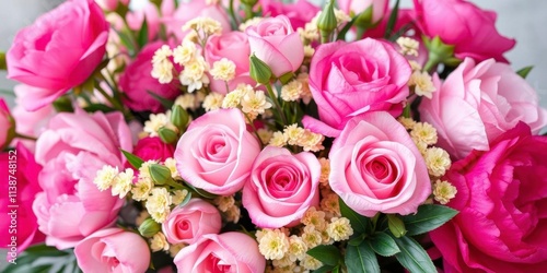 Fresh bunch of pink peonies and roses arranged beautifully with space for text, flowers, celebration