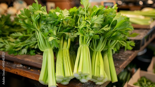 celery, stalk, vegetable, green, fresh, market, produce, healthy, raw, food, ingredient, bunch, tied, crisp, alimentary, organic, farm, agriculture, diet, vegetarian, vegan, natural, shop, display, wooden, rustic, still life, closeup, vibrant, leafy, aromatic, crunchy, fiber, vitamin, cooking, grocery, harvest, garden, plant, wholesome
