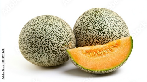 Fresh Cantaloupe Slices on White Background