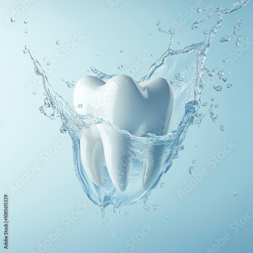 Fresh Clean White Tooth with Water Splash, Dental Care Concept