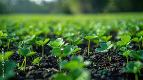 clover, green, growth, nature, plant, agriculture, dirtied, sunlight, landscape, outdoors, freshness, spring, farming, cultivation, field, rural, environment, shoot, vibrant, texture, leaf, botanical, earth, small, closeup, calmness, seasonal, beauty, depth, watering, palmy, pattern, fragile, ecosystem, health, grass, meadow, germination, expansion, greenery, blossom, harvest, nurturing, wildlife, germ bud