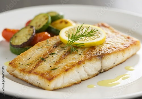 Fresh, colorful grilled white fish. Rich in protein, delicious, and nutritious. Healthy white fish.