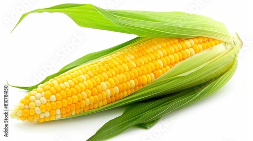 corn, cob, vegetable, food, agriculture, harvest, healthy, organic, fresh, natural, green, leaf, plant, produce, nourishment, yellow, closeup, studio, white background, still life, raw, uncooked, farm, seasonal, ingredient, crop, kernel, ear, stalk, garden