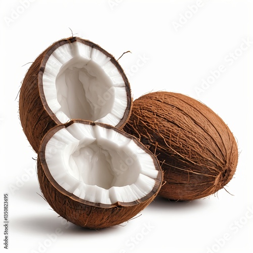 Fresh Cracked Coconuts on White Background