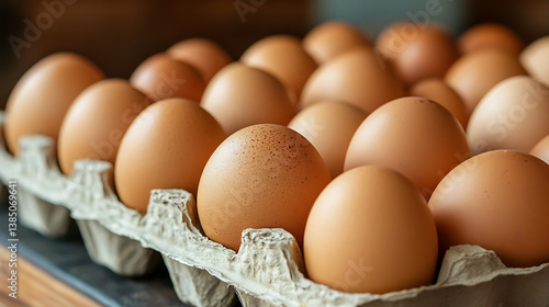 Fresh eggs are highly nutritious and versatile, perfect for various dishes. This showcases carton filled with brown eggs, highlighting their smooth texture and natural color