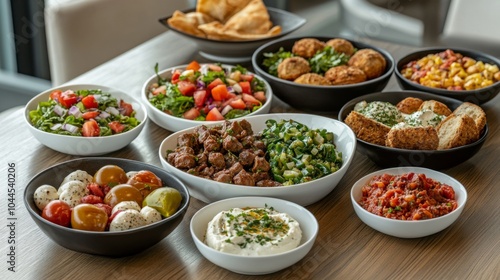 eastern, family, meal, fresh, ingredient, high, contrast, natural, lighting, dining, room, food, salad, tomatoes, herb, olive, pita, plate, bowl, table, lunch, gathering, tasty, healthy, colourful, variety, cookery, home, delicious, preparation, presentation, nourishment, casual attire, inviting, texture, arrangement, freshness, share, communal, vibrant, cook, receipe, life events