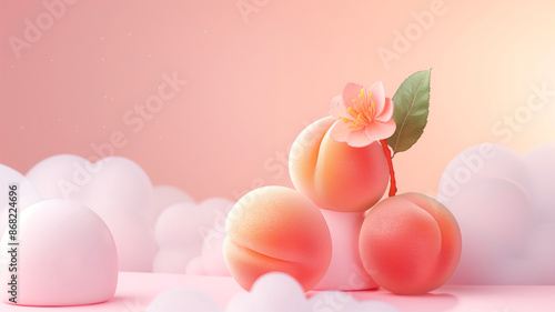 Fresh, fresh and vibrant peaches, Generative AI.新鮮で瑞々しい躍動感あふれる桃、Generative AI。