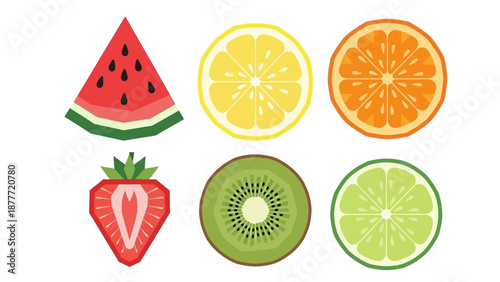 Fresh Fruit Slice Collection: Watermelon, Lemon, Orange, Strawberry, Kiwi, Lime
