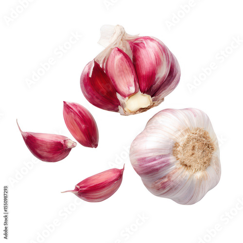 garlic, clove, bulb, food, fresh, healthy, vegetable, kitchen, organic, pungent, favor, aroma, culinary, ingredient, cooking, red, white, natural, alimentary, diet, vitamin, mineral, raw, whole, cut, separated, piece, healthy eating, nourishment, food photography, closeup, isolated, studio, isolated image, macro, organic food, produce, farming, agriculture