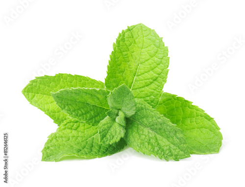 Fresh green mint leaves isolated on white background