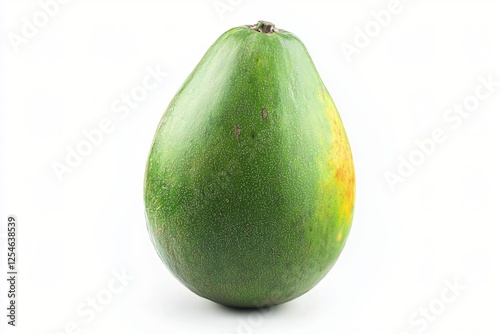 Fresh green avocado on a white background showing its natural texture and vibrant color