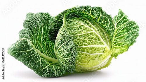 Fresh Green Cabbage with Textured Leaves and Beautiful Coloration