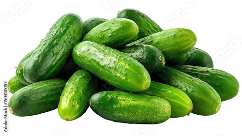 Fresh green cucumbers piled up from above on white background ideal for grocery ads, organic food branding, and nutrition content