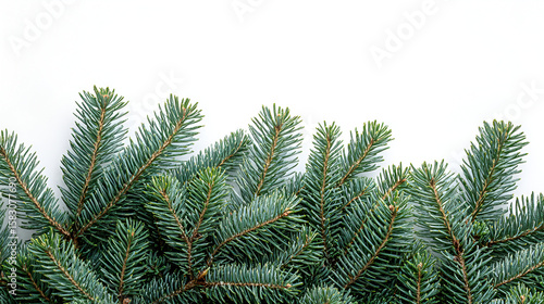 fir, spruce, pine, evergreen, conifer, coniferous, tree, tree branch, bough, needle, sprig, twig, wood, plant, foliage, botanical, botany, nature, natural, green, blue, white, background, border, frame, edge, copy, space, closeup, detail, texture, pattern, fresh, lush, vibrant, clean, simple, minimalist, isolated, winter, winterly, december, holiday, festive, celebration