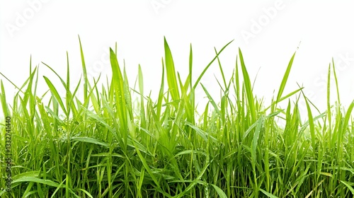 Fresh Green Grass Blades on White Background for Nature Themes