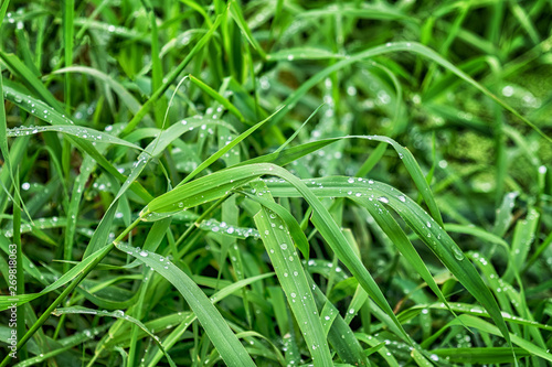 Fresh green grass with drops of water