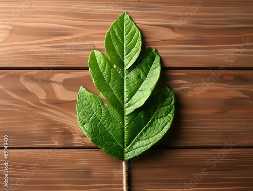 Fresh Green Leaf on Wooden Background - Nature, Texture, and Organic Elements in Harmony