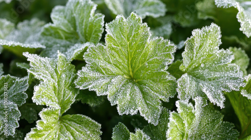 Fresh green leaves covered in dew droplets, showcasing nature beauty and detail. vibrant foliage reflects morning light, creating serene and refreshing atmosphere