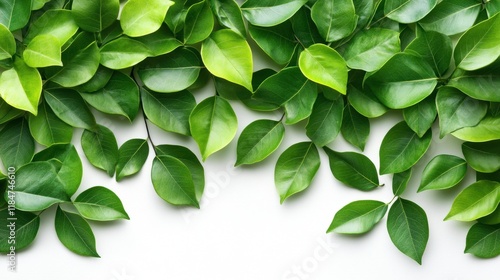 Fresh Green Leaves Layered on Soft White Background for Nature Aesthetic