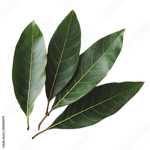 Fresh green leaves overlapping, with serrated edges against a white background