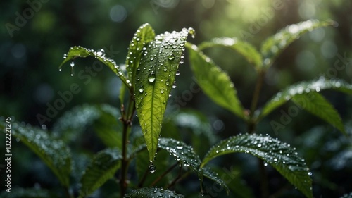 leaf, foliage, dew, nature, greenery, macro, morning, droplet, freshness, botanical, delicate, aethereal, calmness, sunlight, shadow, aesthetic, landscape, photo, detail, pristine, serene, lush, soft light, artistic, beauty, seasonal, growth, environment, elegant, moisture, reflections, closeup, untouched, calm, luxury, hi-res