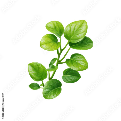 Fresh Green Leaves with Water Droplets on a White Background Ideal for Nature and Wellness Themes Transparent background or png