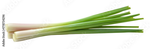 fresh green leeks isolated on transparent background.