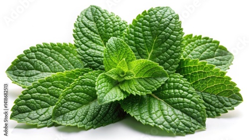 Fresh Green Mint Leaves Isolated on White Background - High-Resolution Stock Photo