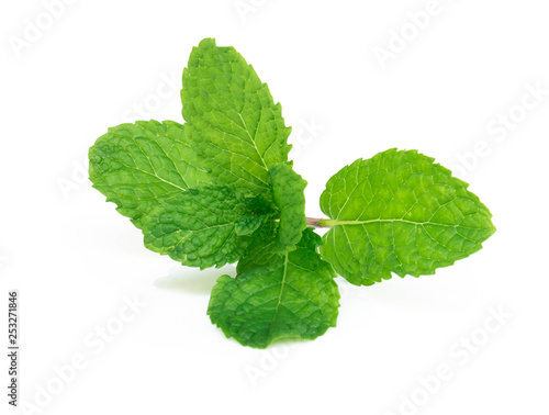 Fresh green mint leaves isolated on white background, Herb and medical concept