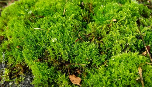Fresh green moss grows densely, creating a lush miniature forest, showing natural textures and detail up close.