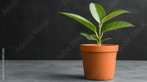 Fresh Green Plant in Brown Pot on Dark Background